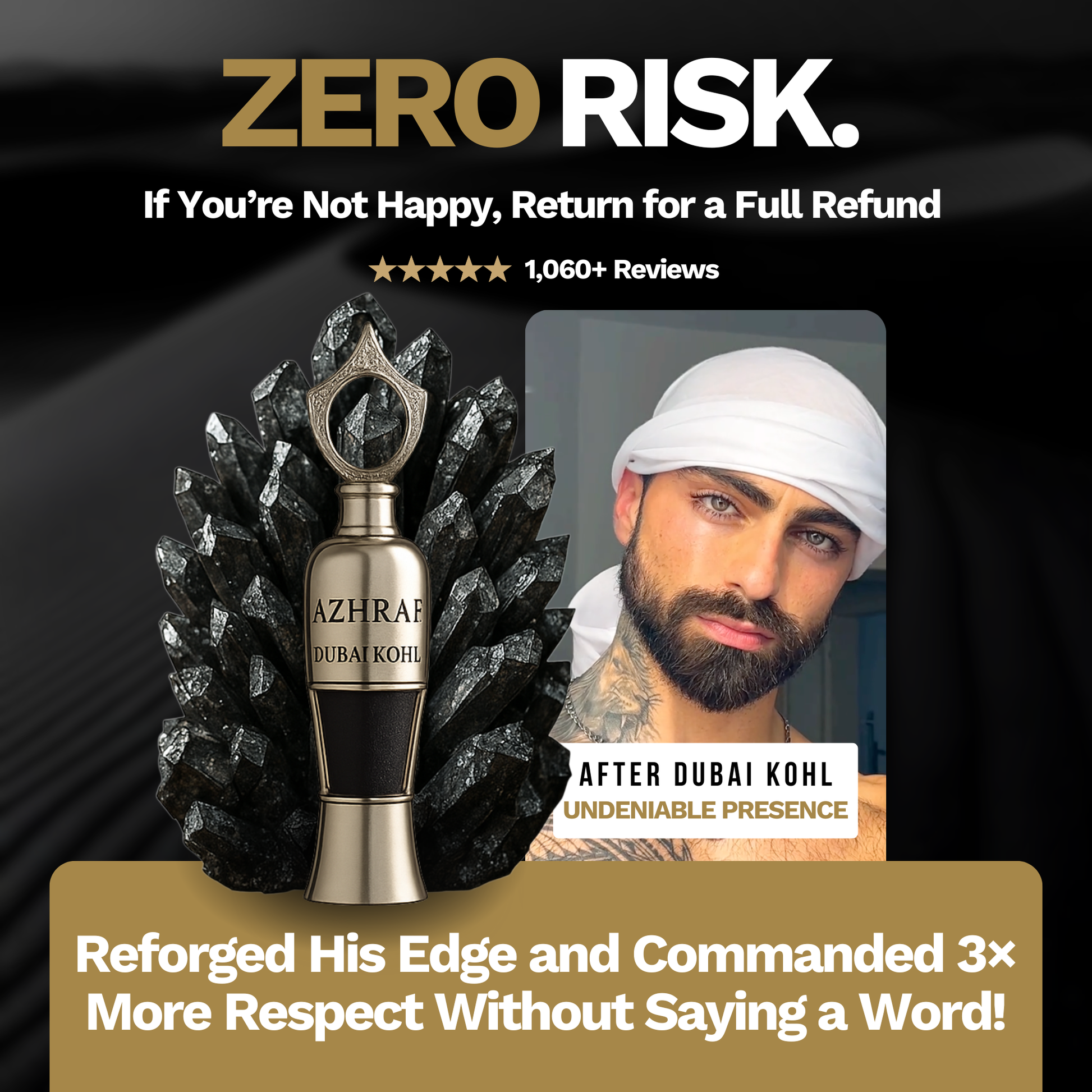 If you don’t feel sharper, more focused, and more powerful in your presence, we’ll refund you — no questions, no weakness. We take the risk because real men stand behind their word.